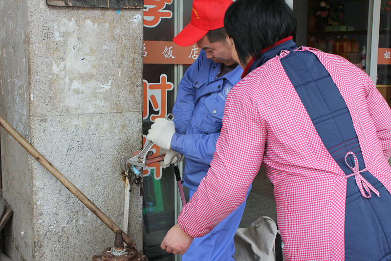 圖為集團(tuán)志愿者為濱海鏡海社區(qū)居民上門免費維修水管