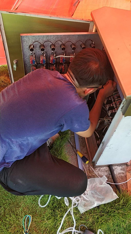 排水公司的自控維修人員在將近40℃的高溫下安裝自控設(shè)備,調(diào)試各項(xiàng)參數(shù)。