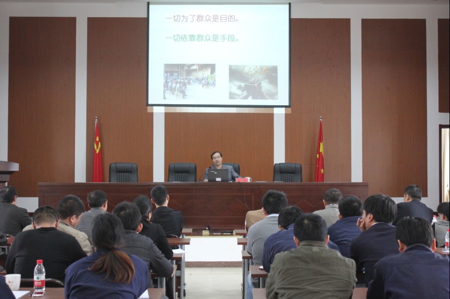 課上,俞鴻老師闡釋了黨的群眾路線的基本內涵,回顧了黨的群眾路線形成歷史、形成過程,強調了黨的群眾路線的重要作用和當前堅持黨的群眾路線的緊迫性和必要性。俞鴻老師強調,要做好群眾工作,必須牢固樹立群眾觀點;提高調查研究,掌握民情民意的能力;創新工作方式方法;虛心向群眾學習;自覺接受群眾監督。黨課采取PPT模式進行,圖文并茂,內容豐富生動、具有很強的針對性、指導性和可操作性,使大家對黨的群眾路線有了更直觀的認識和更深刻的理解。
